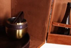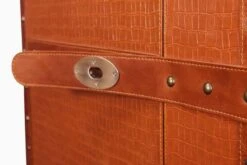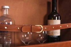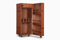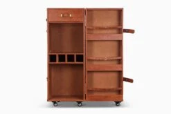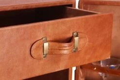Create a truly luxurious at-home bar experience with this genuine leather bar cabinet, lined with suede fabric and featuring antique hardware for a heritage feel.