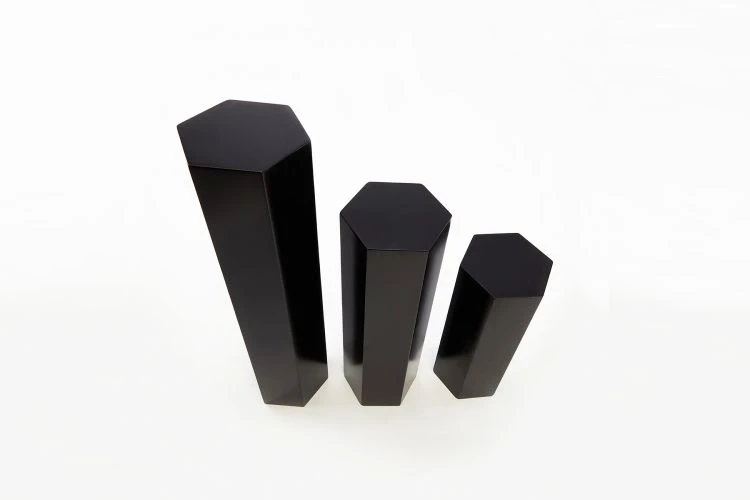 The Black Hexagon Pedestal is a no-nonsense column that is suitable for many applications, such as furnishing a shop, museum, or as a quiet column in your living room or office. The plinth is hollow and therefore easy to move. Available in a range of sizes.