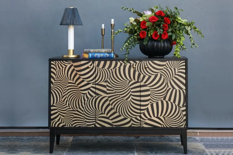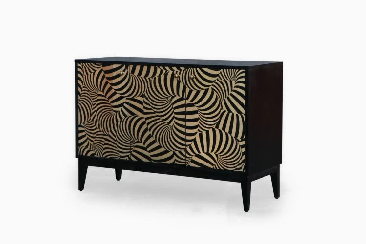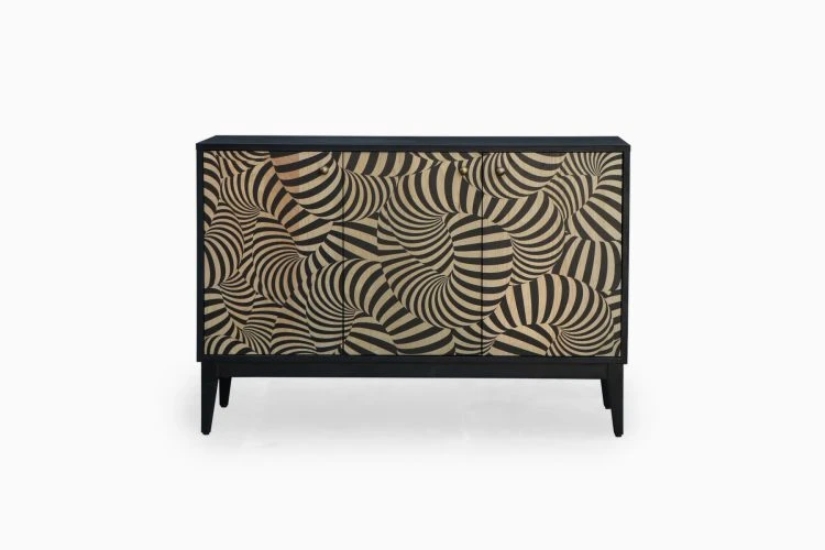 A tribute to the decadence of the Art Deco period, the Taylor Cabinet refers to the geometric variations seen in the style. Profoundly versatile, this gorgeous buffet provides statement-making storage in an entryway, bedroom, or living room.