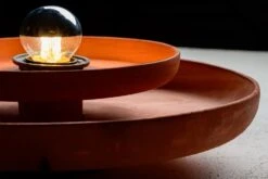 Formed with the process of slip casting, the terra sconce features an internally lit face that is punctuated with the corresponding lamp. Terra is a compact and versatile fixture that can be mounted on the ceiling or wall. Available in three different finishes.