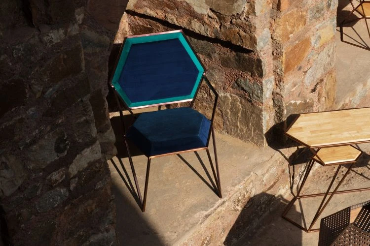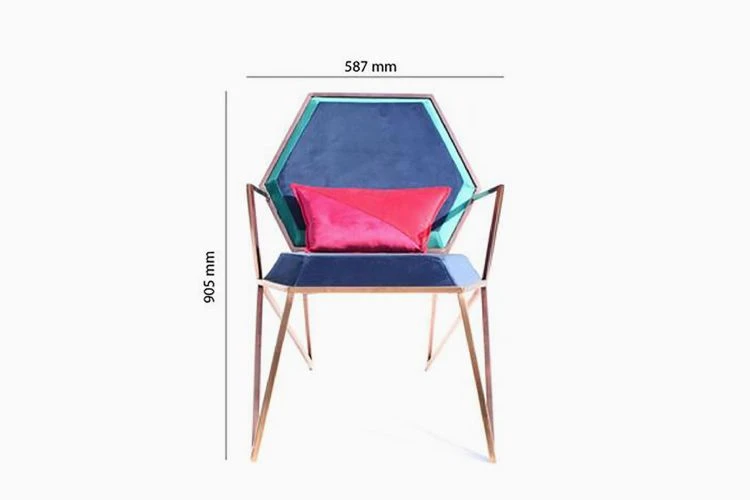 The strong lines and easy proportions of this chair make it a comfortable addition to any space – formal or informal. A combination of three different hues is used to complete the look which further helps to accentuate its surface and hexagonal geometry.