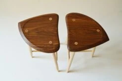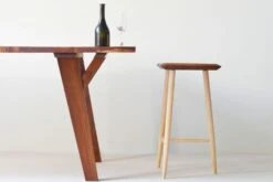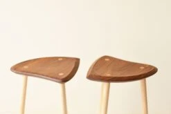 Each bar stool by Solid Bench has a carefully handcrafted edged slab top that is shaped for comfort with a scooped seat design. The contrasting colors of the East Indian Rosewood and White Oak with beautiful natural grain patterns make this bar stool truly eye catching. It is finished with linseed oil for a protective coat and easy functionality.