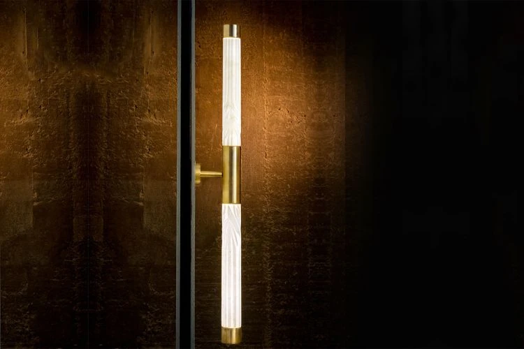 Outfitted with integrated LED technology, the Wall Mount lighting range has a slim and streamlined form that works with any style. Blocks of white Makrana marble are hollowed out into individual tubes, allowing for light to pass through in a refracted form, while the surface of each is further hand-carved by local artisans from Jaipur.