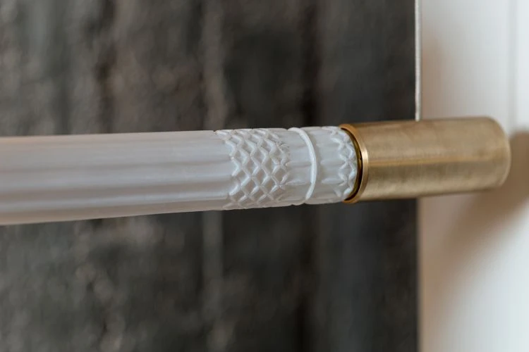 - The wall mounted marble tubes are available in both smooth and carved finishes, with added customisable detailing.