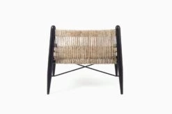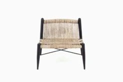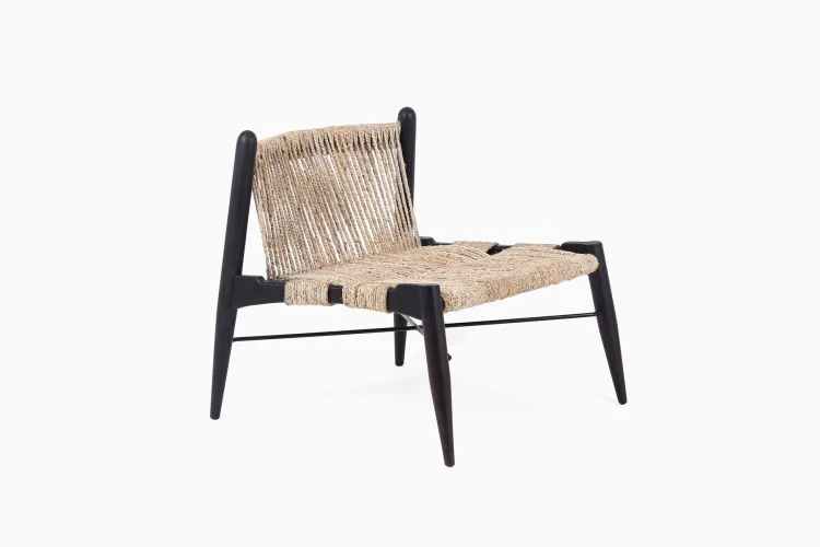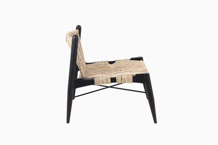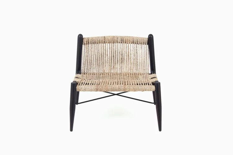 The Wrap armchair celebrates furniture with a minimal and sustainable footprint. The Acacia wood frame is made strong through spare construction with complementary metal rods. Unprocessed jute cord is wrapped over the frame to create the seating surface. The simplicity and direct use of natural materials is a reference to mid-20th century furniture style.